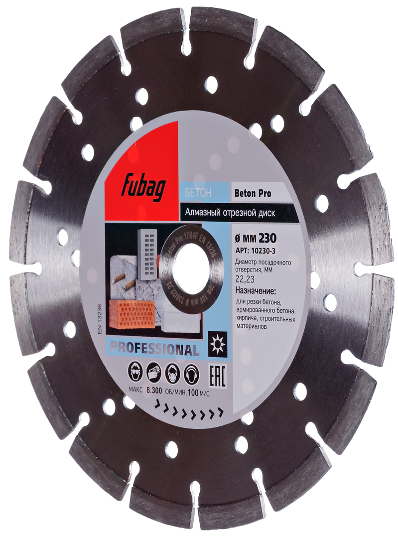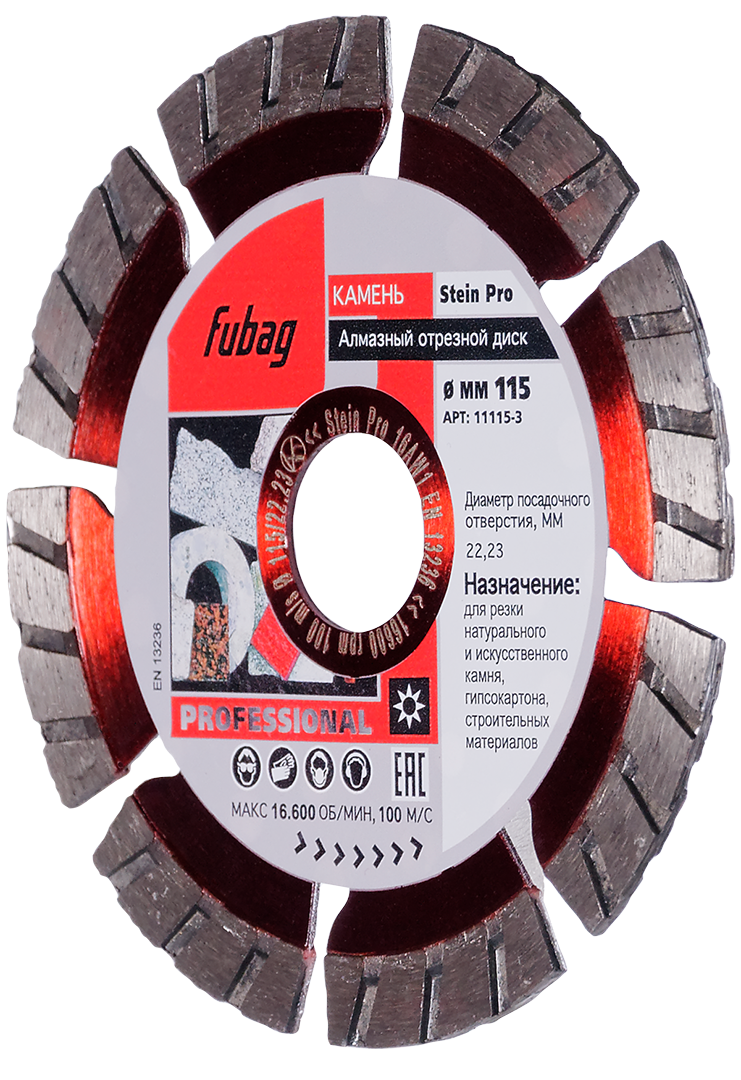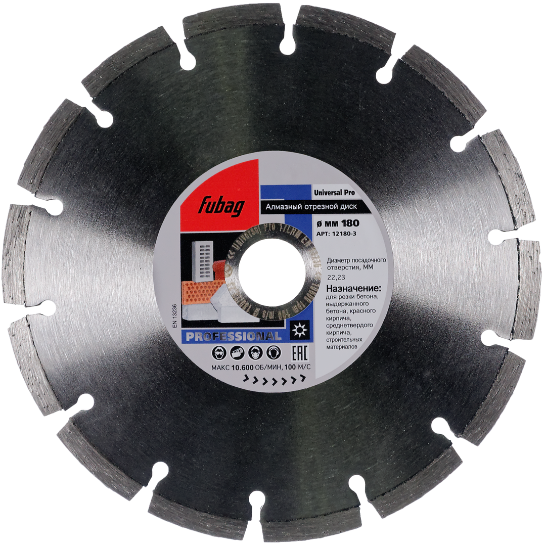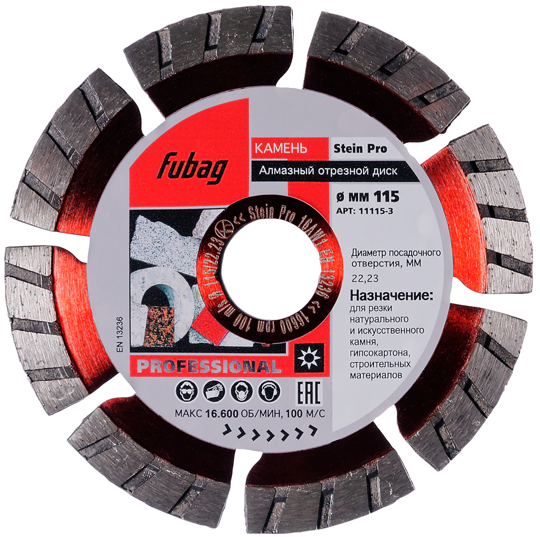 - Повышенный срок службы алмазного отрезного круга обеспечивается высококачественными материалами и высокими технологии Fubag