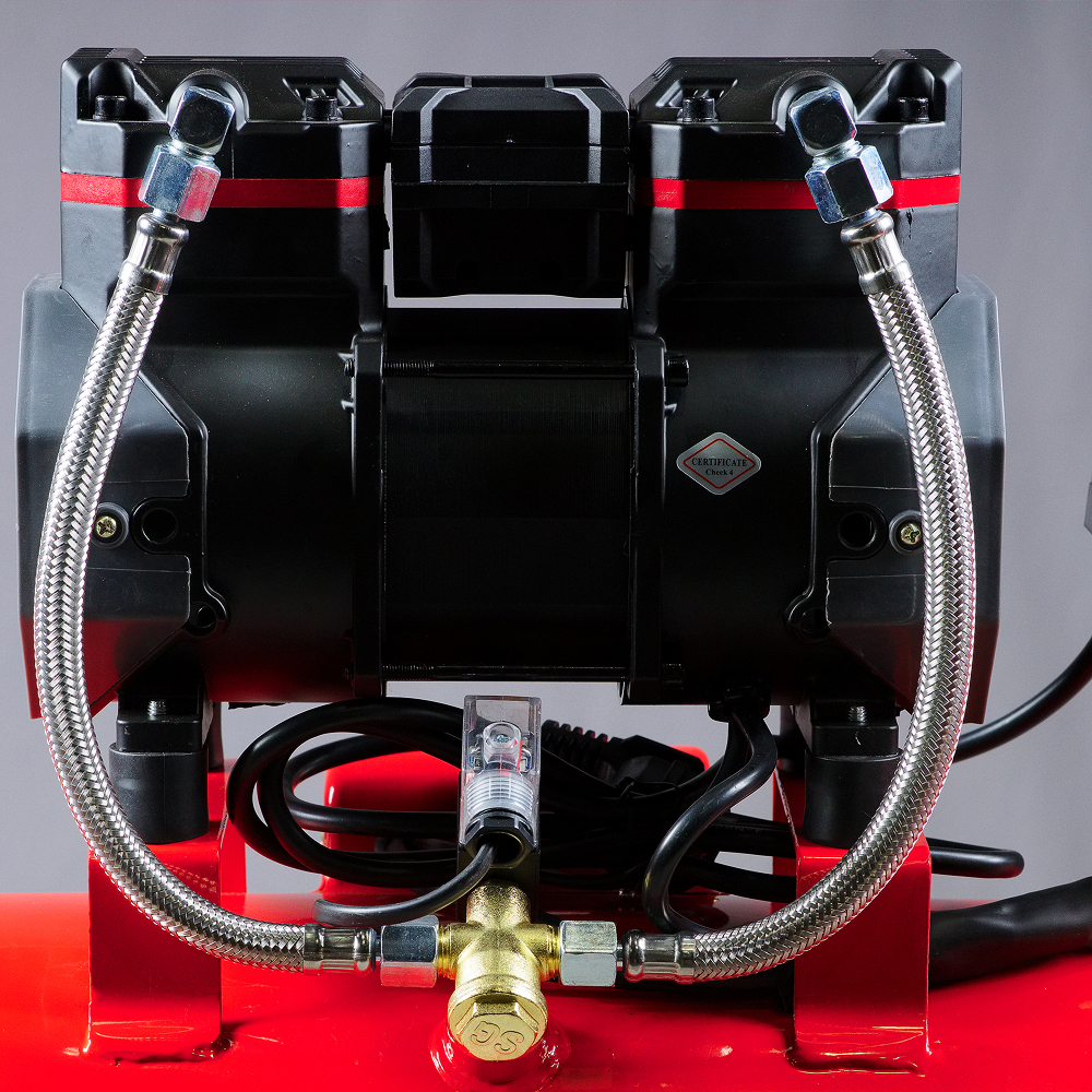 Отсутствие масла позволяет легко транспортировать компрессор в любом положении без риска протечек.