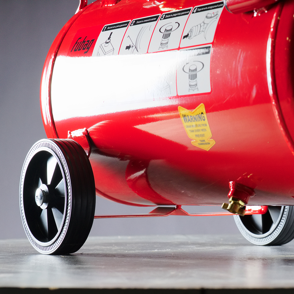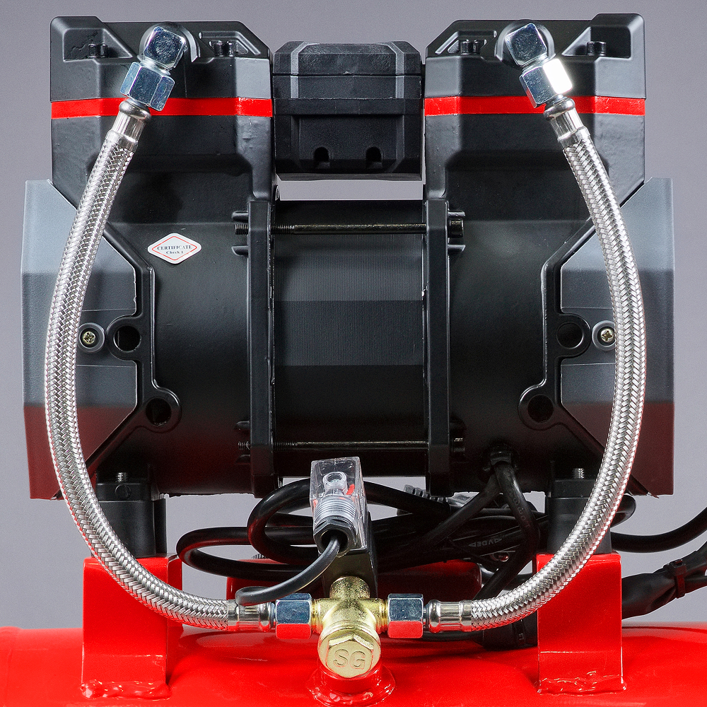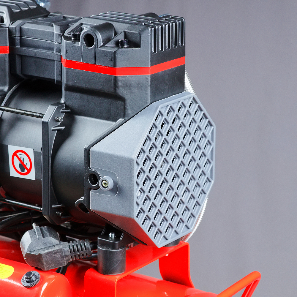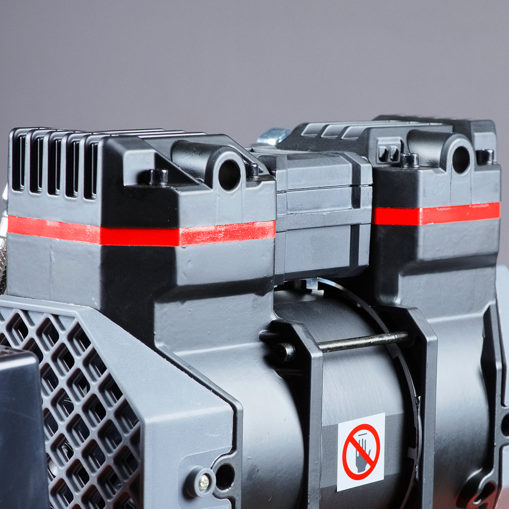 Отсутствие масла позволяет легко транспортировать компрессор в любом положении без риска протечек.