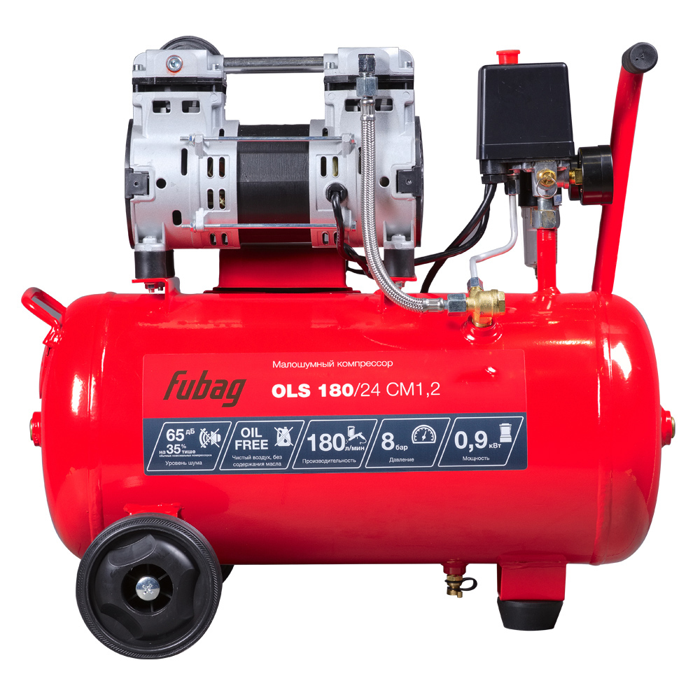 Безмасляный коаксиальный компрессор Fubag OLS 180/24 CM1.2 производительностью 180 л/мин - лучший выбор, если нужен чистый, без примесей масла, воздух при работе с краскопультами, аэрографами и другими окрасочными инструментами для проведения ответственных покрасочных работ.